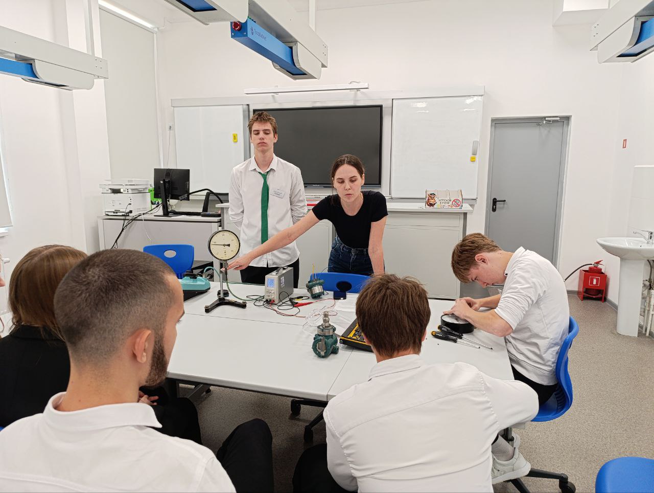 В МАОУ «Анкудиновская СШ» специалисты индустриального партнера — компании ООО «Инфраструктура ТК» (г. Кстово) — провели урок, посвященный одному из ключевых физических величин — давлению. Ребята узнали какие бывают виды давления и где мы сталкиваемся с ними в повседневной жизни и на производстве, как устроен и работает манометр — главный прибор для его измерения. Специалисты не просто рассказали теорию, а разобрали реальный прибор прямо на уроке.