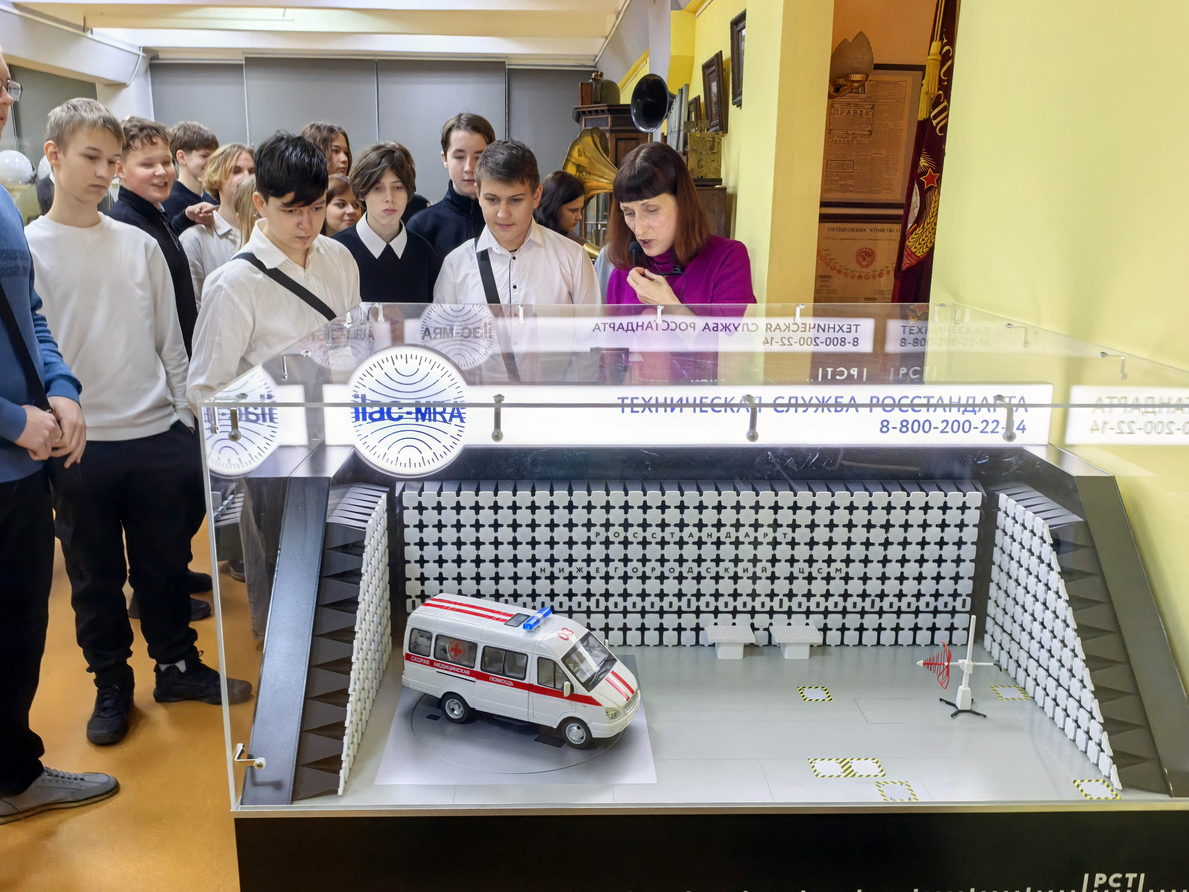 Один из современных разделов экспозиции — макет опорной лаборатории ИЦ «Нижегородиспытания» ФБУ «Нижегородский ЦСМ», построенной в рамках нацпроекта «Международная кооперация и экспорт». Это единственная в Приволжском федеральном округе лаборатория, где проводятся испытания всех без исключения технических средств, электроприборов и транспортных средств на соответствие требованиям электромагнитной совместимости.